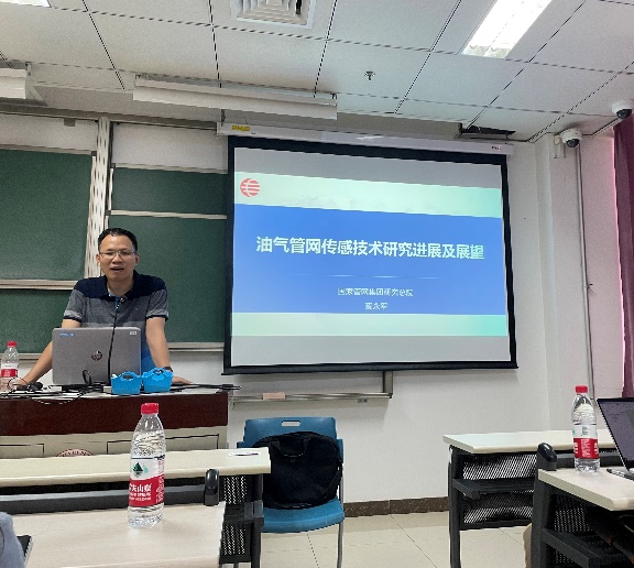 为提高广大研究生对管网传感技术的认识,拓宽同学们的知识视野,机械与储运工程学院于2023年9月1日下午14:30-17:00举办“鼎新”讲坛活动。此次活动由国家石油天然气管网集团科学技术研究总院蔡永军高级工程师担任讲座主讲人,能源与动力工程系系主任熊至宜副教授主持,40余名老师和研究生同学参加讲座。