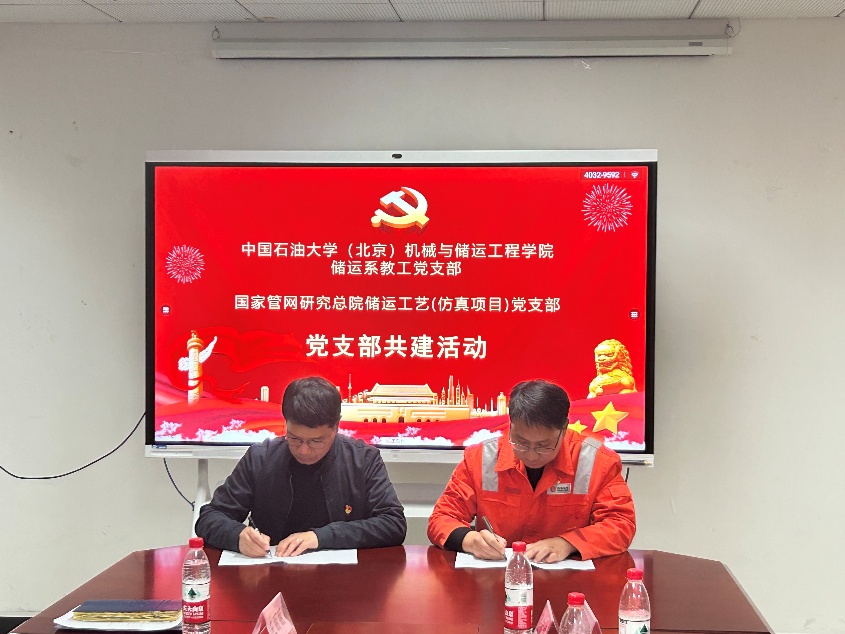 双方支部参会人员围绕未来支部共建、业务交流和合作、人才培养等内容进行深入研讨和交流;储运系教工党支部书记孙旭和储运工艺(仿真项目)党支部副书记闫锋代表双方签署了党支部共建协议。