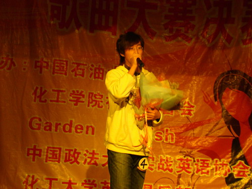 11月23日下午7点,由我校化工学院社团联合会Garden English 协会主办的第五届三校英文歌曲大赛决赛在科学会堂举行。经过初赛和复赛,来自中国免费靠逼视频,中国政法大学,北京化工大学三所高校的12名选手在决赛中相遇。