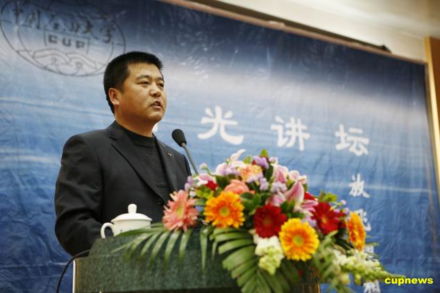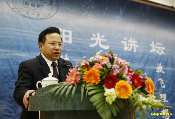 大庆石油有限责任公司新闻文化中心副主任宋传修作了题为“兴油报国待百年约”的报告。他讲述了大庆人传承大庆精神,不断找到更多油气资源,实施可持续发展战略,演绎了油田青春的不老神话。他高度赞扬了大庆油田杰出代表、我校杰出校友、新时期铁人――王启民,以先进人物为榜样、树立远大目标、不迷信权威、勇于创新以及一无反顾追求真理的精神。他希望我校毕业生能投身大庆石油这片热土,为我国石油事业贡献力量。