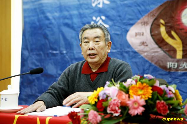 报告会在翠宫二楼报告厅举行。报告会上,大庆油田化工总厂党委书记朱鼎科为师生们讲述了“我所认识的王进喜”。他主要从三个方面谈了他的同事王进喜的先进事迹以及个人体会:第一,王进喜同志为党分忧、拼命大干精神。王进喜在我国石油事业内外危机的情况下,勇赴前线,人拉肩扛装运井架,争时间,抢时间,破冰取水保开钻,昼夜拼搏多开井,危急关头亲身搅水泥的自我牺牲、为国奉献的先进事迹;第二,王进喜勇于进取奋斗精神。他虽然文化水平不高,但他一直不断学习,通过革新技术工艺,不断创造神话;第三,王进喜同志的铁骨柔情。他虽是铁人,却能心系工人生活,关注工人冷暖。