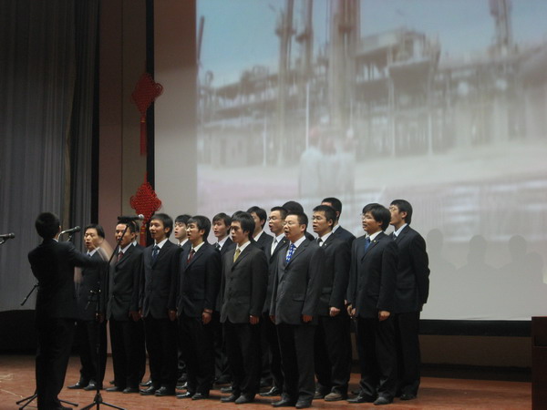 晚会在雄壮的中华人民共和国国歌声中拉开序幕。《扇子舞》作为开场舞隆重登场,民族乐器合奏《小城故事》,藏族舞《天路 》、《蒙古舞》、《国风》,现场书法表演,武术表演等展现了中华文化的独特魅力;歌曲《精忠报国》、《我爱你中国》、《我为祖国献石油》展示赴俄留学生飒爽的英姿,抒发了中华儿女报效祖国的伟大情怀;合唱《莫斯科郊外的晚上》唱出了中俄人民友好交流的深深情怀。文艺汇演赢得观众阵阵掌声,欢呼声、喝彩声不绝于耳。