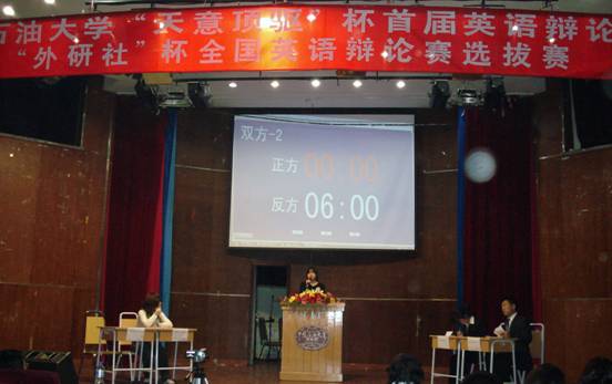 4月8日,由校团委、教务处、外语系主办,辽河油田天意石油装备有限公司、外研社赞助,为期近半个月的中国免费靠逼视频(北京)“天意顶驱杯”首届英语辩论赛暨第十二届“外研社”杯全国英语辩论赛选拔赛在科学会堂成功落下帷幕。16支参赛队伍中有四支队伍通过初赛、复赛脱颖而出,参加最后角逐。最终由外语系刘蒙蒙和马文辉组成的辩论队获得冠军,外语系的张奇、王珊、李莹、张琬,资源与信息学院的孙建,石油天然气工程学院的伍文惠荣获最佳辩手的称号。