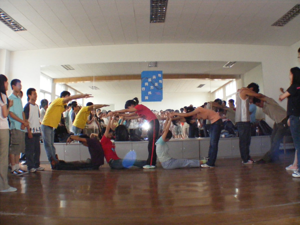 本次培训的主题为“与奥运同行,与压力共舞”,培训科目既有团队共同完成的“汪洋小舟”、“同心同行”,也有各个成员之间互动的交流共享,同时还有针对奥运服务中可能遇到的问题而进行的情景模拟表演。在整个培训过程中,同学们都显示了极高的热情,通过交流互动,同学们从陌生到熟悉,从熟悉到信任,从信任到团结。