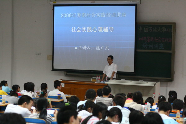 培训以精美的短片开始,回顾了之前实践团的成果,展示了遵义红色之旅,关于农民工子女的调查,走进山西高阳煤矿,进入辽河油田、新疆油田、长庆油田等的实践活动,体现了我校坚持社会主义荣辱观,理论与实践相结合等特色。