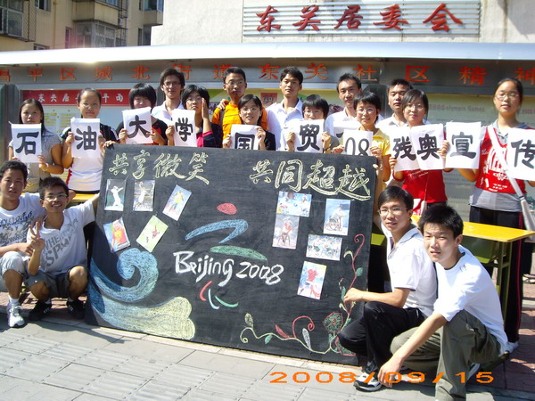 9月15日,工商管理学院国贸08-1团支部在昌平区燕平路举行了主题为“共享微笑、共同超越”的残奥会公益宣传活动。这次活动旨在普及残奥会知识、观众规则和礼仪,使广大市民更好地了解残奥会,关注残奥会。