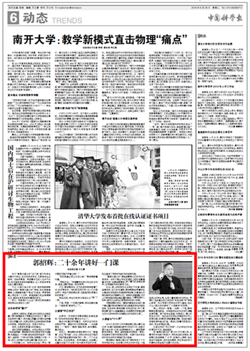 《中国科学报》第6版以“郭绍辉:二十余年讲好一门课”为题报道了石大教师风采