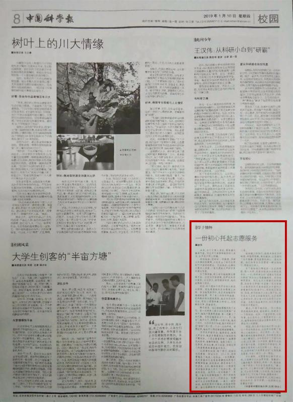中国科学报刊登石大地球科学学院学生谈志愿服务的文章