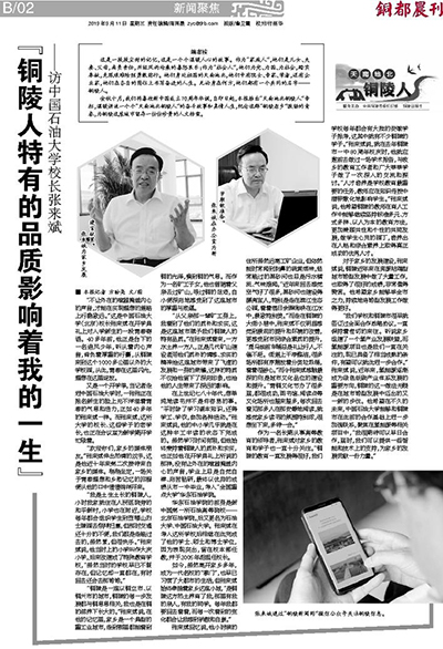 铜陵日报铜都晨刊刊登校长张来斌专访