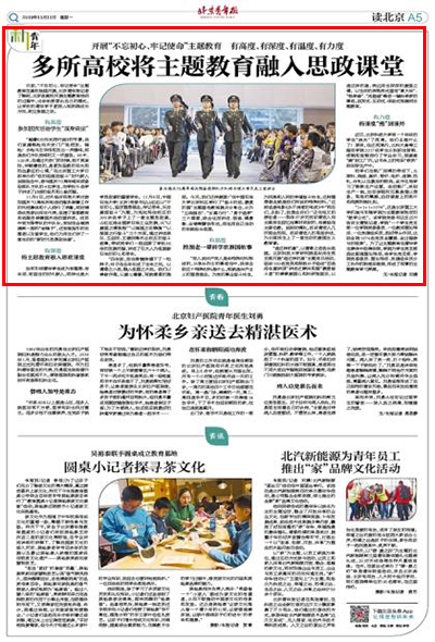 日前,“不忘初心、牢记使命”主题教育在高校陆续开展,北京青年报记者了解到,北京各高校开展主题教育活动的过程中,也纷纷探索出自己的模式,让学校的青年学子更深入地明确成长方向,树立报国之志。