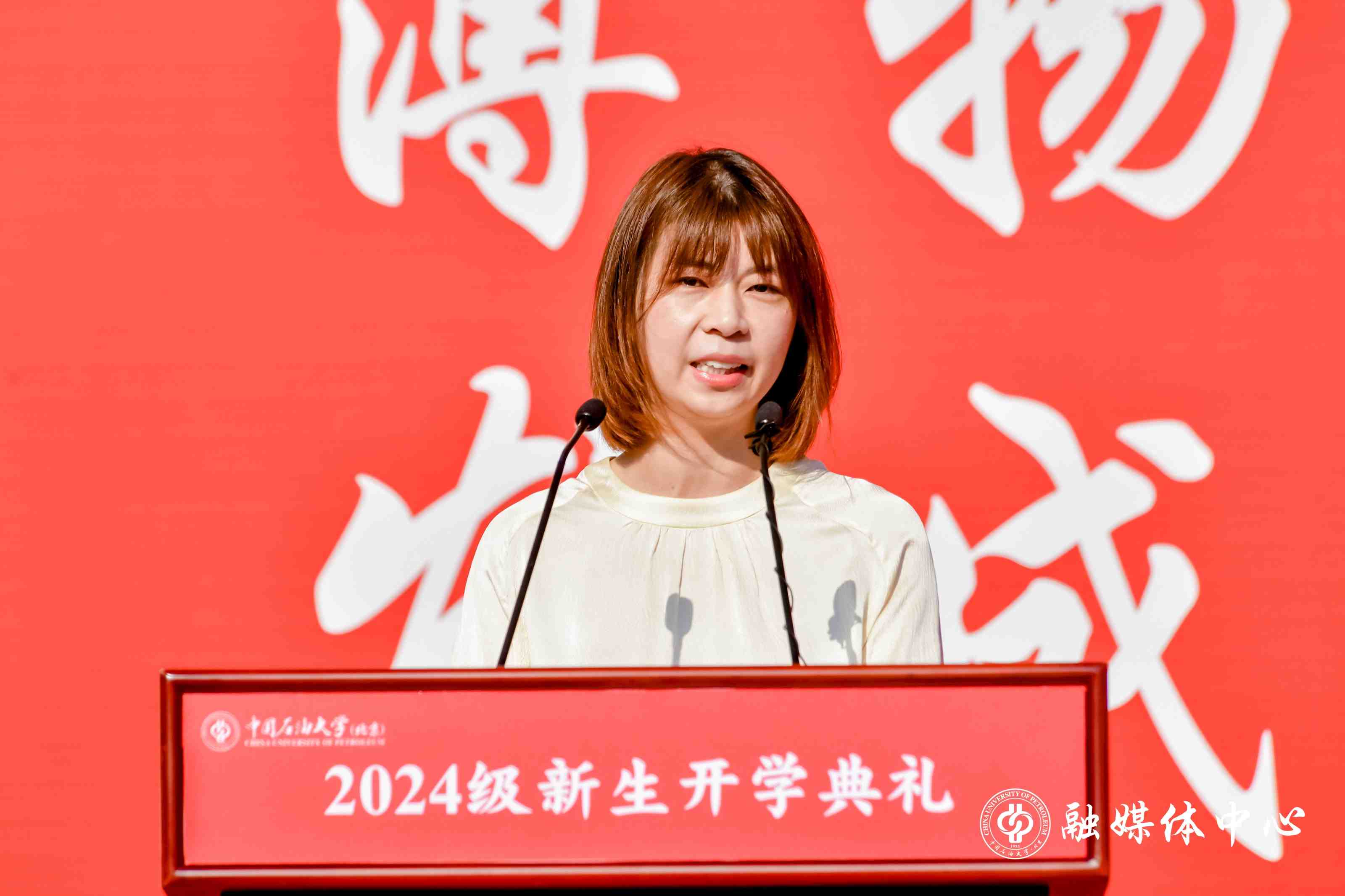 教师代表、经济管理学院副教授吕慧希望新生擦亮能源底色、熟悉能源行业,扎根所在专业、汲取传承经验,弘扬中石大精神,永葆“心系家国”的大情怀,注重实干,成长为可堪大用、能担重任的时代新人。