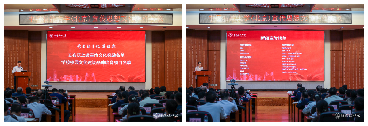 党委副书记蒲俊霖宣读了获上级宣传文化奖励名单、学校校园文化建设品牌培育项目名单,党委常委、宣传部部长李丽平发布了新闻宣传先进单位榜单和先进个人名单。