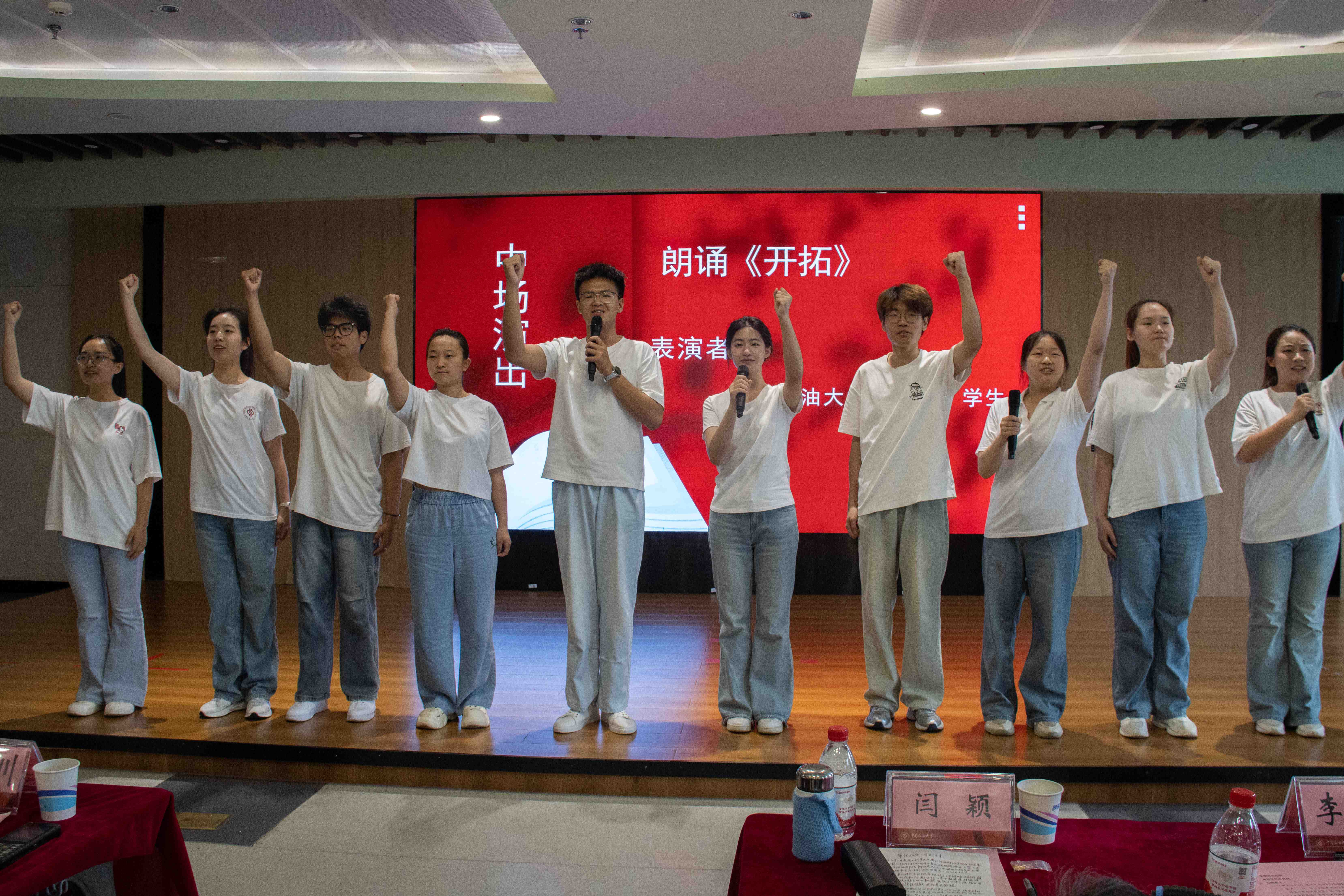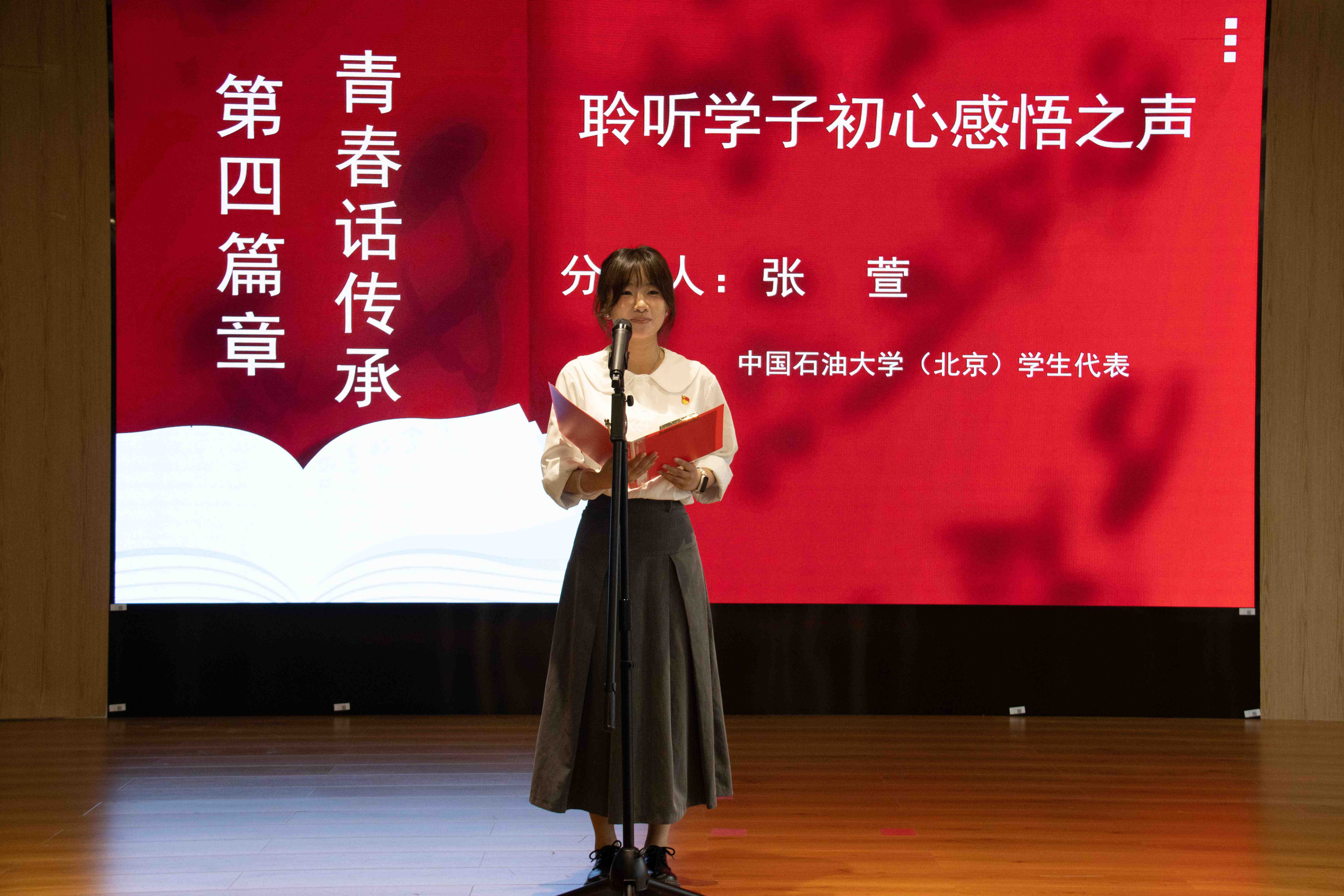 在主题宣讲环节,全国离退休干部先进个人、昌平区老干部宣讲团成员闫颖以亲历者视角讲述了侵华日军对中国同胞的暴行,鼓励青年大学生发奋图强,积极弘扬爱国主义精神。昌平区“五老”宣讲团成员刘棻结合其父亲身经历,阐释了“最可爱的人”——抗美援朝志愿军们保家卫国的钢铁意志。昌平区“五老”宣讲团成员马全文通过分享昌平的抗战历史,带领大家回溯战争年代的光辉岁月。学校安全与海洋工程学院学生代表张萱、张智栋分别分享了感悟,表示在未来学习生活中将继承与发扬老前辈的奋斗精神,以实际行动践行青春使命。学校大学生艺术团带来了《开拓》朗诵表演。