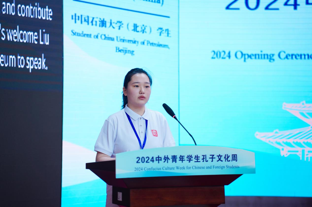 学校外国语学院英语专业2022级本科生刘昱言在活动开幕式上发言,表示将带着对儒家文化的无限敬仰与深切向往,沿着先贤的足迹,与中外青年朋友品味传奇佳话、品尝美味佳肴、体验齐风鲁韵、共享发展成果,思想碰撞、学用相长,在学习中收获友谊。