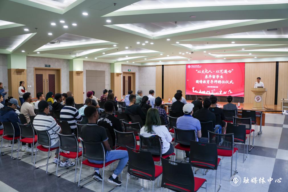为做好来华留学生国情教育,引导留学生学习感受中华优秀传统文化,5月24日上午,中石大举办“以文化人•以艺通心”来华留学生国情教育导师聘任仪式。副校长张广清,离退休工作处、国际教育学院负责人,离退休教师代表、来华留学生代表等参加仪式。