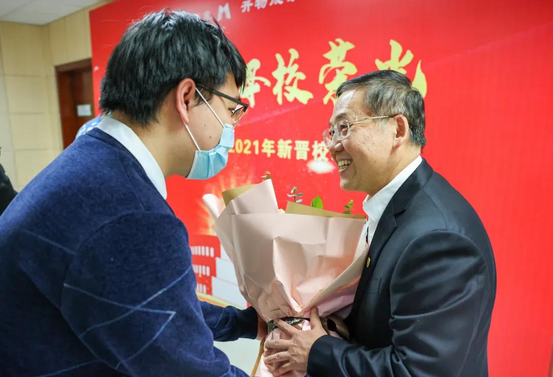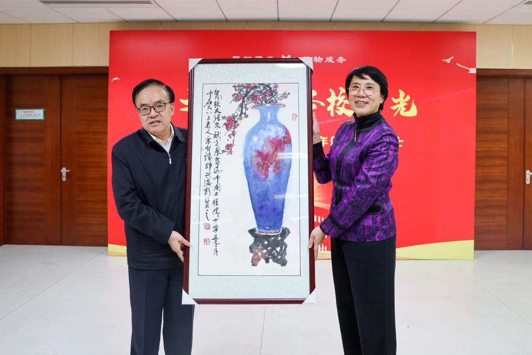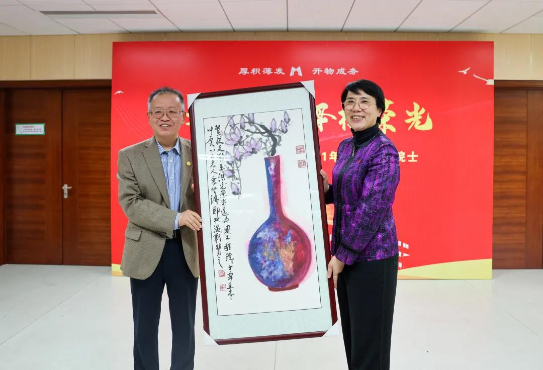 学校90多岁高龄的华泽澎教授得悉四位校友当选院士的喜讯后也非常高兴,并和余世诚教授分别提笔泼墨,为四位院士题字作画。陈峰、吴小林向新晋院士们赠送了书画作品。