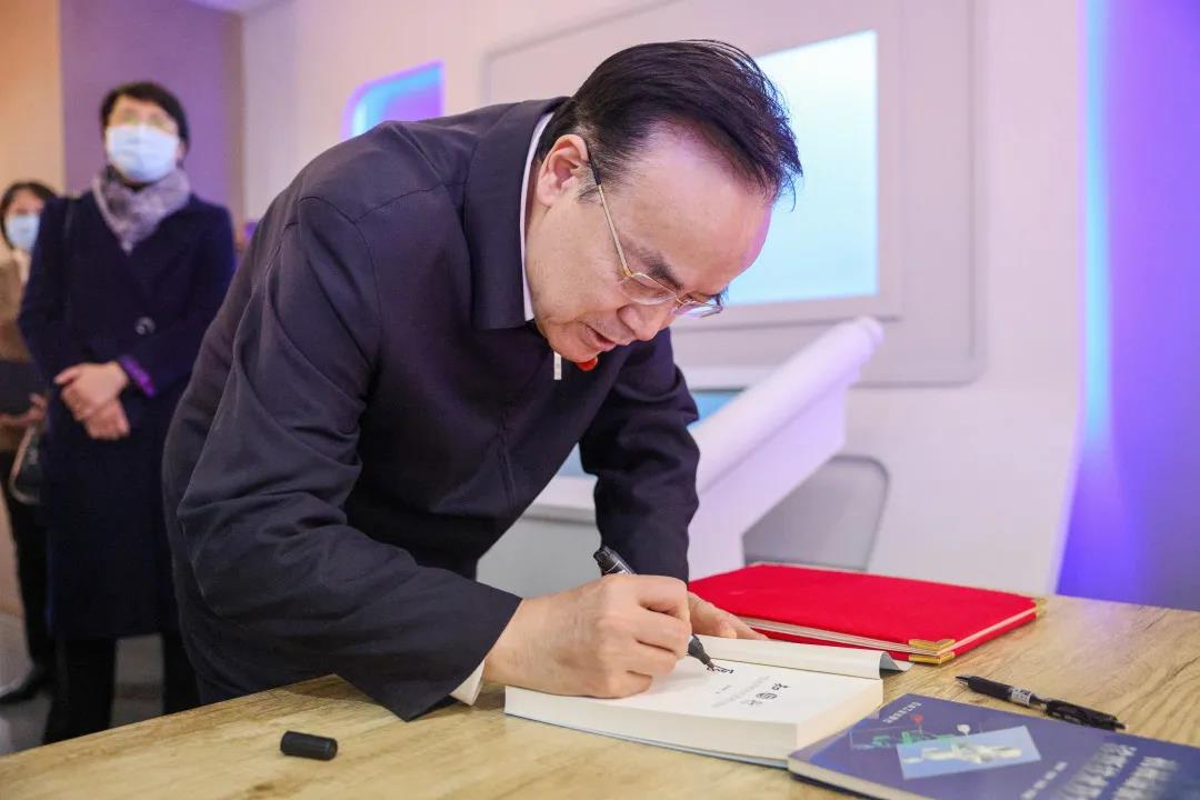 座谈会后,三位校友院士还在校领导陪同下参观了校史馆,并在学校图书馆藏的个人著作上题字留念。