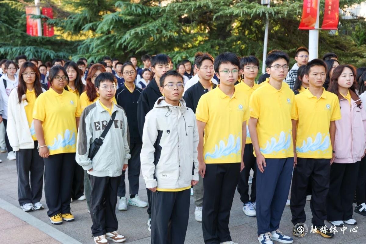 当日清晨,学校在北校门广场举行了隆重的升国旗仪式和国旗下的演讲活动,进一步弘扬爱党爱国精神,引领广大学子树立为祖国为人民永久奋斗、赤诚奉献的坚定理想。全体师生齐声高唱《义勇军进行曲》和《我和我的祖国》,共同表达对伟大祖国的深情热爱和诚挚祝福。