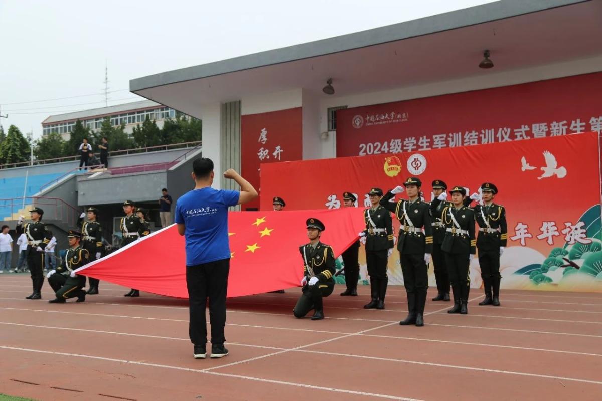 校团委组织200余名青年师生齐聚红旗操场,以青春之笔共同绘就“为国而生 与国同行”巨幅画卷,活动中,中石大建校70周年校庆日在天安门广场升起的五星红旗在学校国旗仪仗队的护送下,首度亮相红旗操场,全场师生面向国旗举起右拳庄严宣誓:不忘初心、牢记使命,自信自强、刚健有为,胸怀国之大者,矢志能源报国,奋力书写为中国式现代化挺膺担当的青春篇章。教育部官微“微言教育”对活动进行了报道。