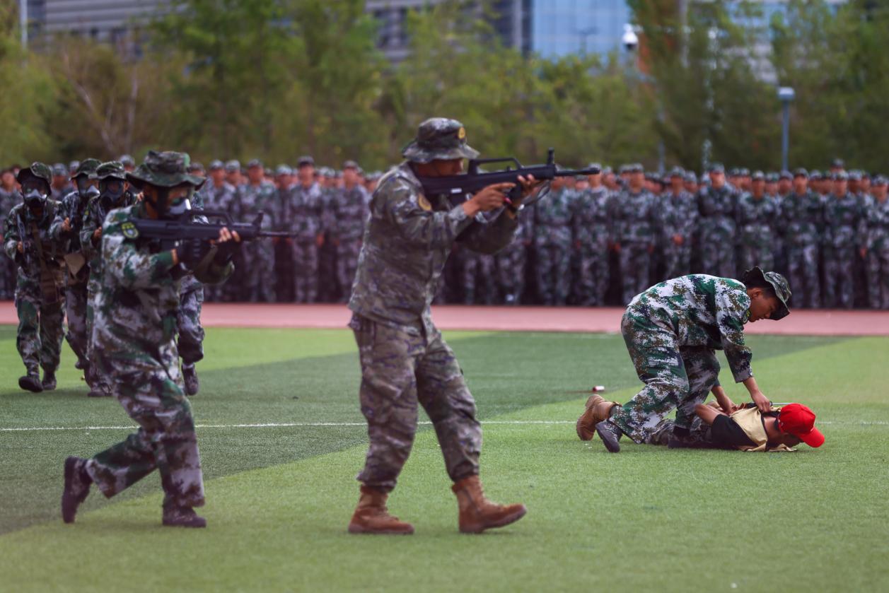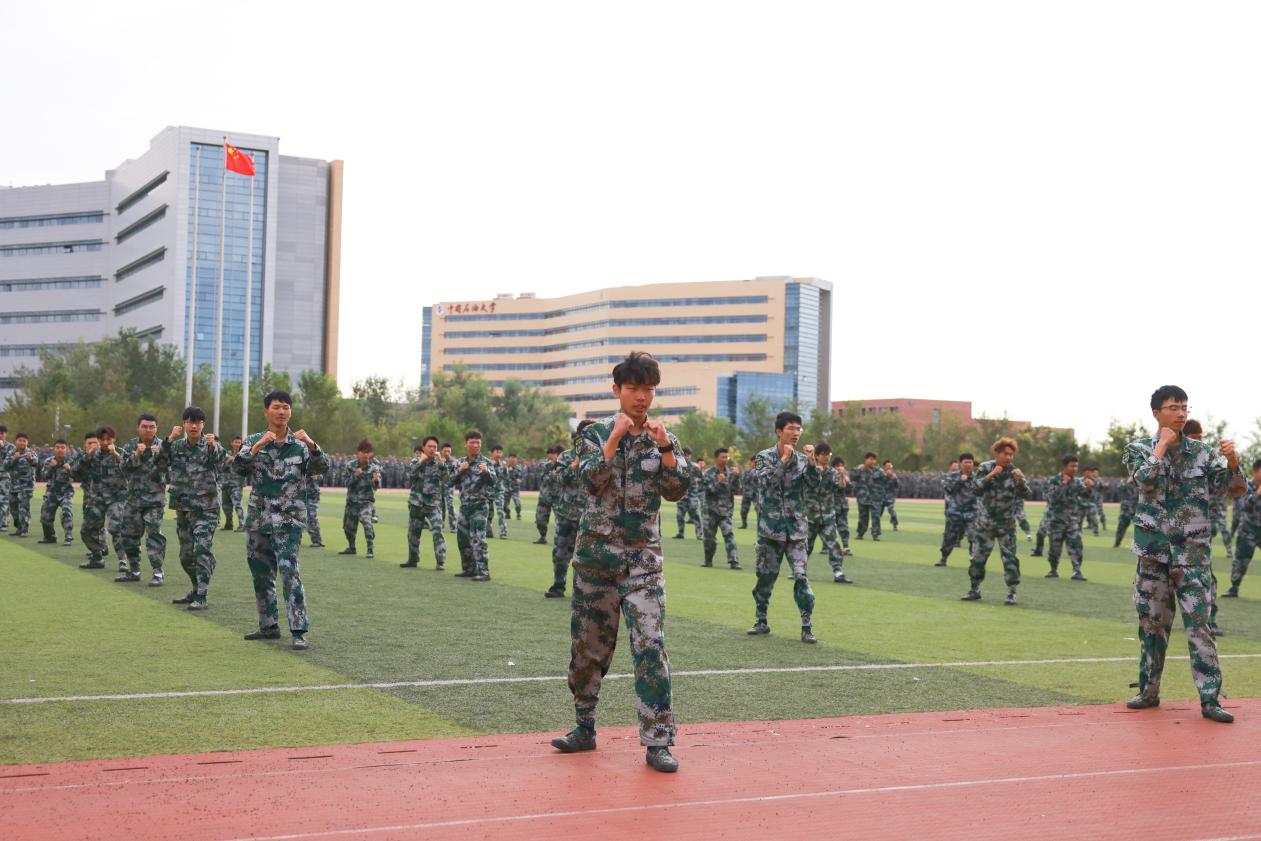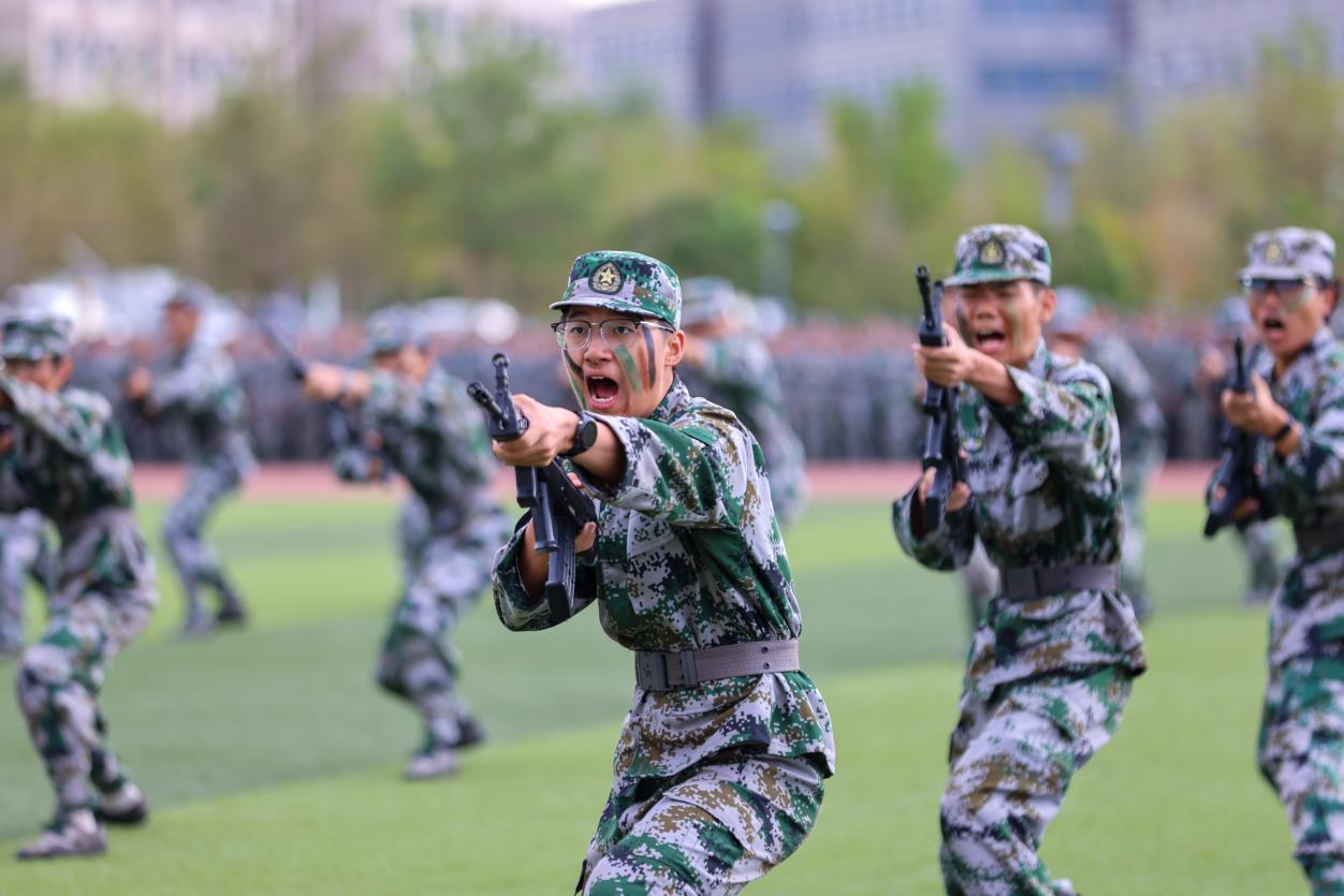 2025级新生进行了一场精彩的军训汇报表演。表演中,他们展示了在军训期间学到的各种军事技能和战术动作,包括擒敌拳、刺杀操、警棍盾牌术、综合战术演练等科目,展现出中石大青年爱国爱校、奋发有为的坚定决心。
