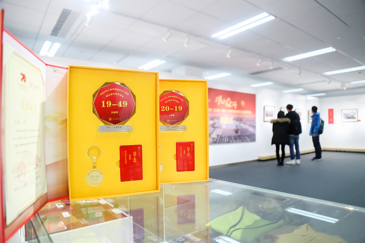 雷玉江与师生代表参观了国庆70周年群众游行图片展。此次图片展以实物和照片的形式,通过感人的瞬间、经典的场景、美丽的画面,回顾了全体参训师生发扬“艰苦奋斗”精神,不畏高温烈日、不惧重重困难,以“精精益求精,万万无一失”的工作作风,高水平、高质量圆满完成方阵训练和游行任务,展示了相关部门和全体工作人员,立足本职、勇挑重担,无私奉献、默默付出,全力做好各项服务保障工作。