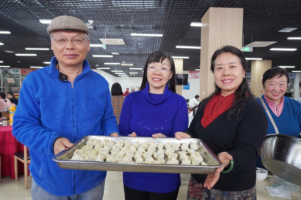 校区留校师生们围坐在一起话家常、包饺子。师生们在欢声笑语中,将美好的祝福和期盼包裹进一个个象征团圆幸福的饺子里。