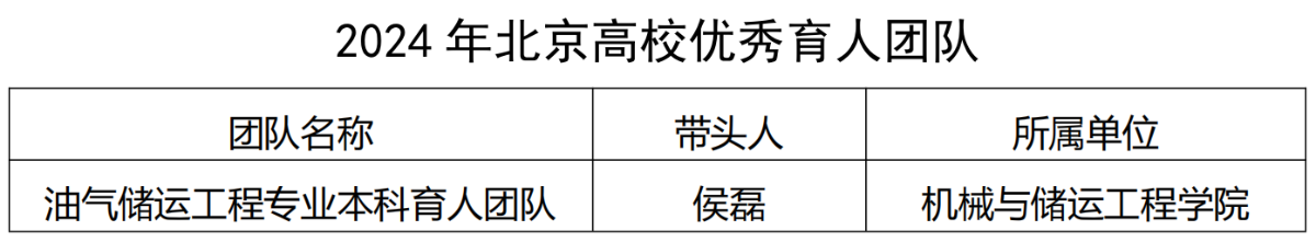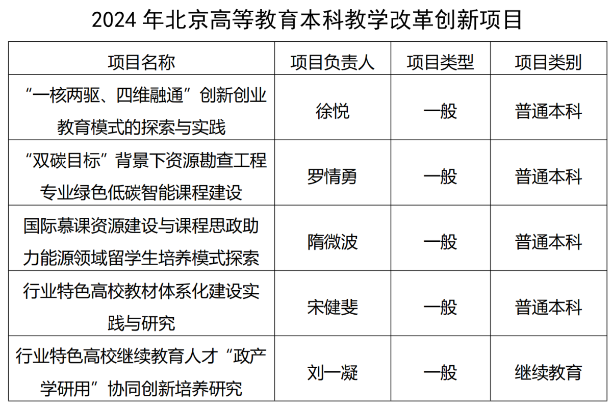 近日,北京市教育委员会相继公布了2024年北京市高等学校教学名师奖、北京高等教育本科教学改革创新项目立项项目名单、北京本科高校产学研深度育人平台评选结果、北京高校“优秀育人团队”“优秀本科实验教学指导教师”“优秀大学生学科竞赛指导教师”“优秀本科教学服务保障人员”“优秀教学实验室”“优质本科课程”“优质本科教案课件”“优质本科教材”的评选结果。中石大共获本科教育教学类项目、奖项31项。