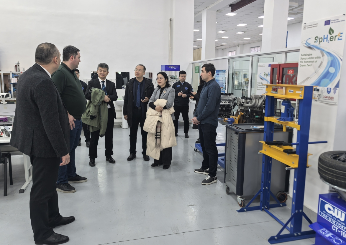 12月13日,代表团一行到都灵理工大学塔什干分校访问交流。该校副校长阿舒罗夫·阿利舍尔(Ashurov Alisher),副校长尤苏波夫·亚洛利丁(Yusupov Jalolliddin),国际合作交流负责人参加座谈。会上,双方分别介绍了学校基本办学情况和发展规划,并就合作事项进行充分研讨。双方达成一致,将在两校已签署合作备忘录基础上,共同申报由欧盟发起的伊拉斯谟+(Erasmus+)计划项目,探索开展“2+1+2”联合培养项目,共同推动两校间师生交流互访和科研合作。期间,代表团一行参观了该校机器人实验室、实验厂房和体育馆等地。该校采用全英文授课,设有机械制造、人工智能、软件工程等专业,目前已成功获批5项伊拉斯谟+(Erasmus+)计划项目,平均资助经费80万欧元/项目。