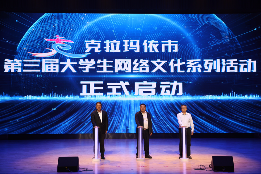 开幕式上,周小三、李军、赵勇义共同为克拉玛依市第三届大学生网络文化系列活动开幕。