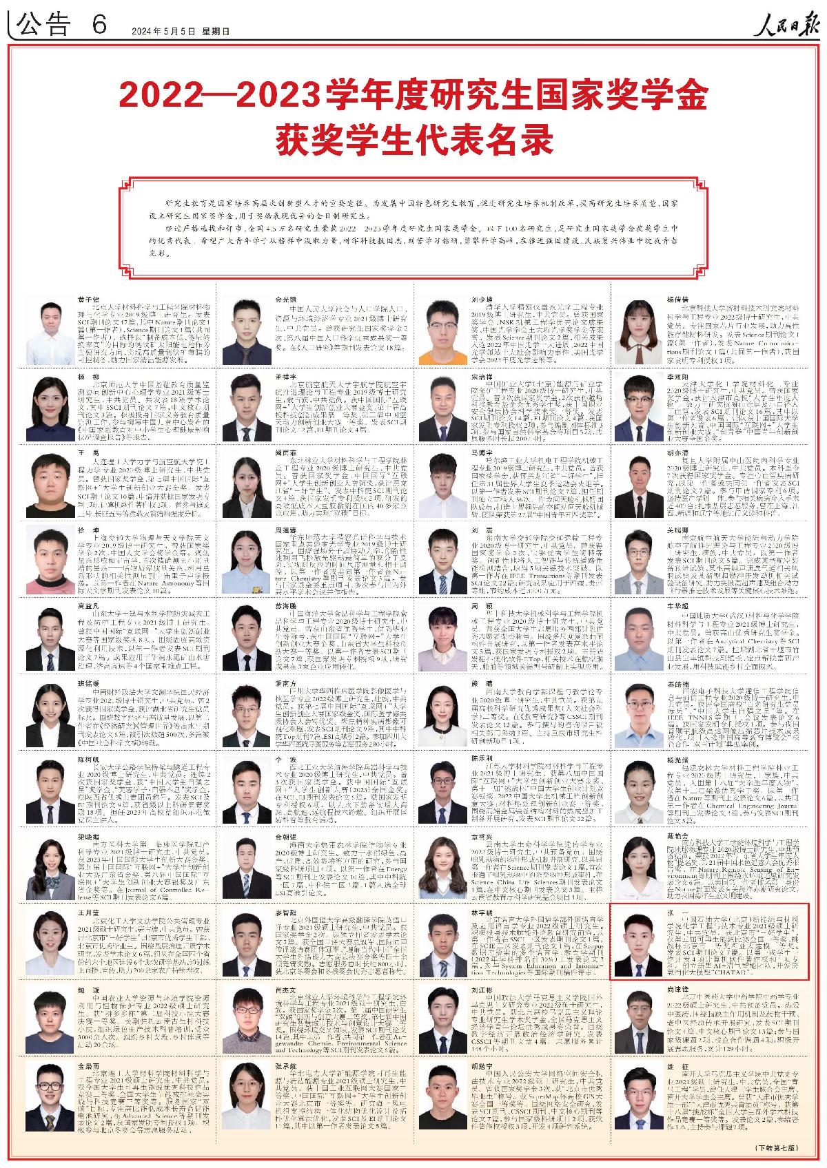 近日,《人民日报》刊登《2022-2023学年度研究生国家奖学金获奖学生代表名录》,选登了100名2022-2023学年度研究生国家奖学金获奖学生代表,中石大硕士研究生张一作为代表在选登名录之列。据悉,全国共有4.5万名研究生荣获2022-2023学年度研究生国家奖学金。