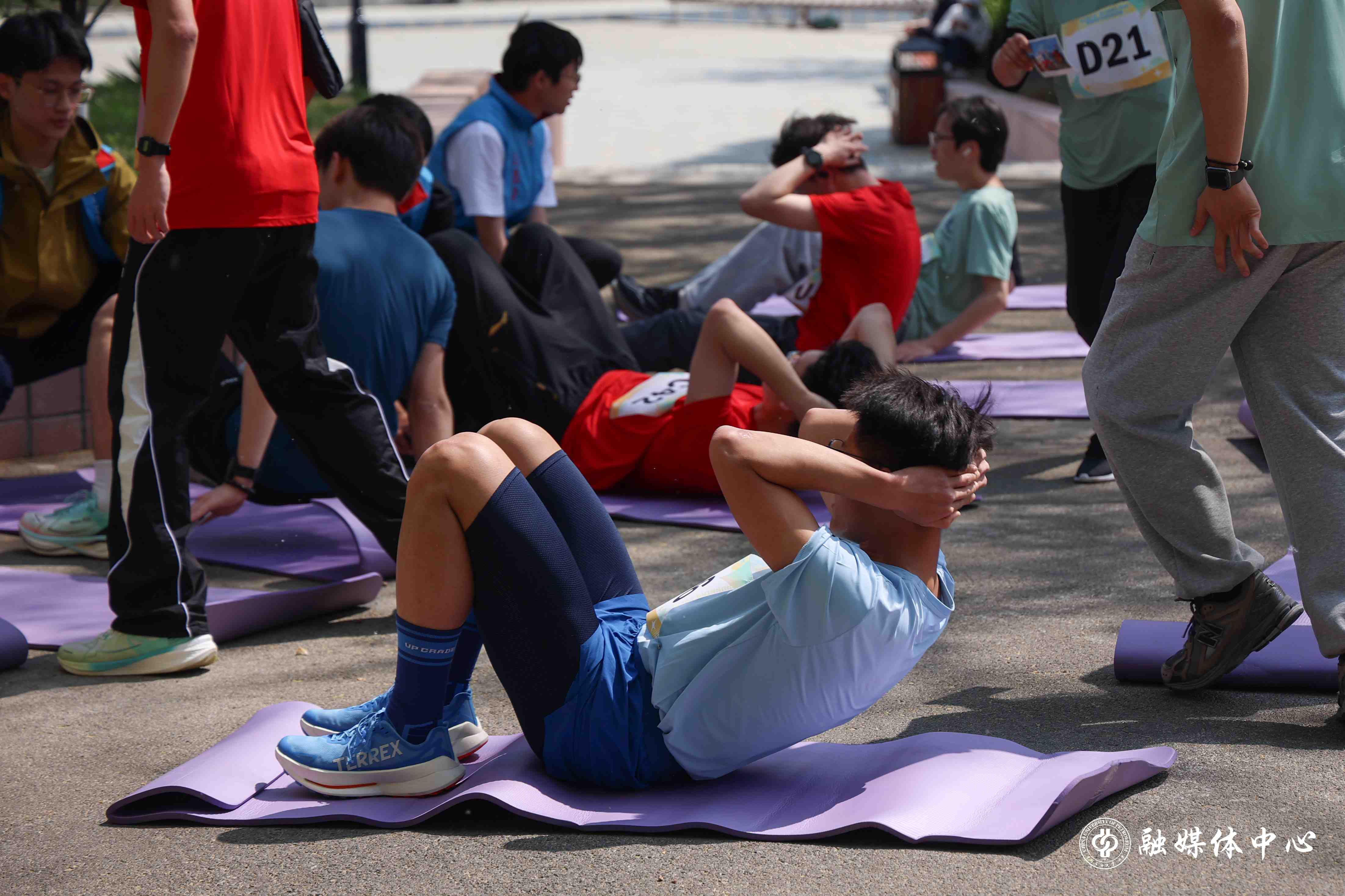 开幕式后,苗浩进行主题分享,并带领同学们进行赛前热身。随着发令枪响,挑战赛正式开始。挑战赛有针对性地融入了多项学生体能测试内容,参赛选手需绕校园3圈,并在第2圈内完成跳绳、跨栏、小轮车、仰卧起坐、深蹲等7项打卡任务。