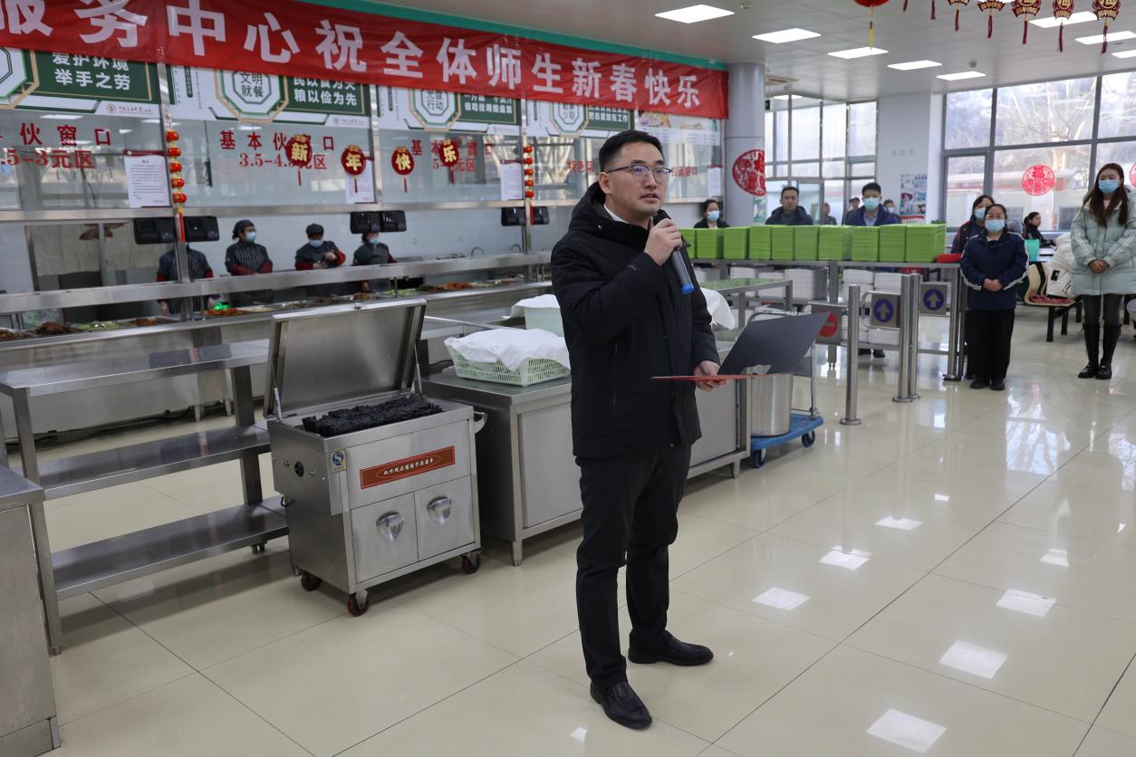 1月28日除夕,中石大为留校师生员工准备了丰盛的年夜饭,党委副书记蒲俊霖同留校中外学生与坚守岗位的教职员工共享年夜饭、共同庆祝新春佳节。