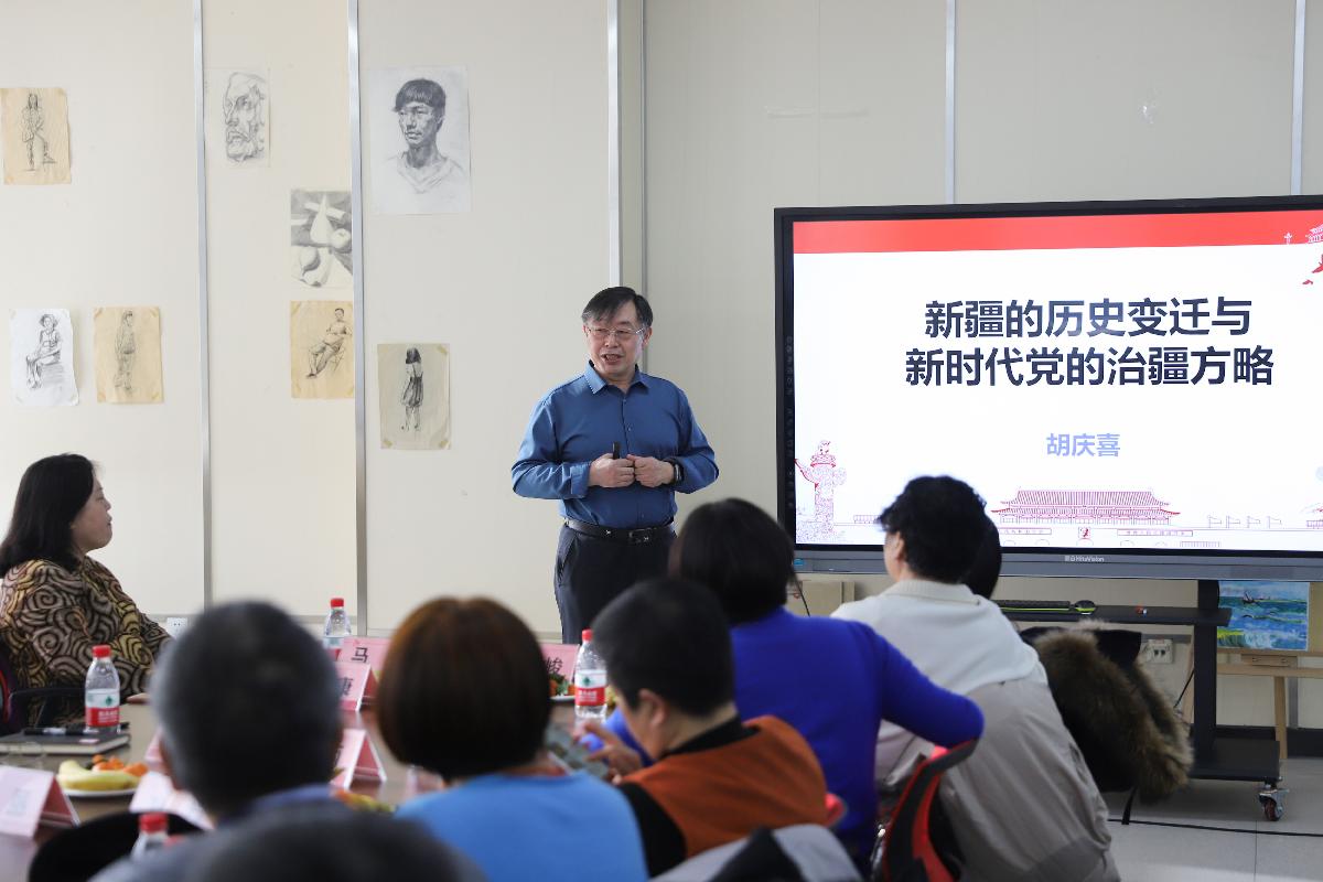 原校区党委副书记、纪委书记胡庆喜讲解了新疆地方史,让援建教师更好地了解了新疆历史文化及地域特点。组织人事部主任宋强解读了援建教师相关人事政策,教务部副主任林莉讲解了校区教学规范和要求,合作发展部副主任费葳葳从服务保障方面做了工作生活提示。