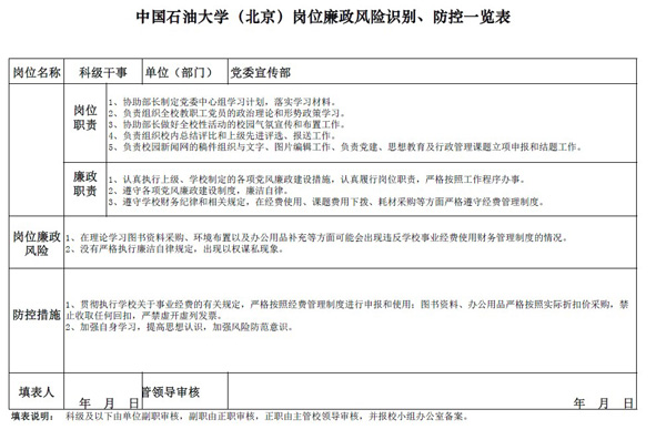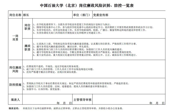 中国免费靠逼视频(北京)党委宣传部岗位廉政风险防控表