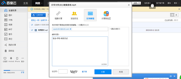 2)非文字类作品由于容量较大,可将作品于2015515日前上传至百度网盘,分享链接到邮箱,具体分享操作步骤见附录。