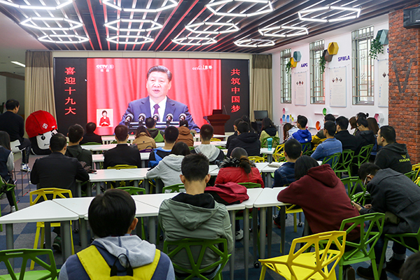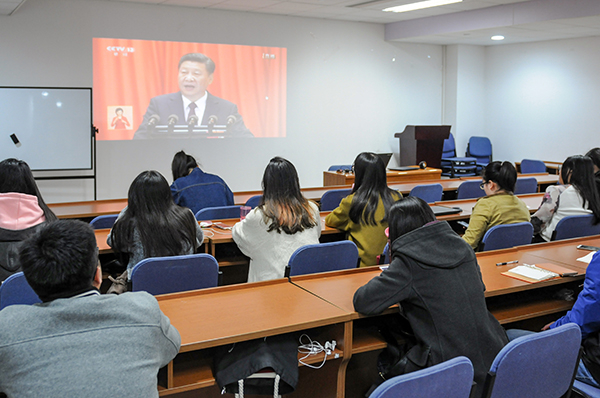 【喜迎十九大】中国免费靠逼视频组织师生集中收看党的十九大开幕会电视直播