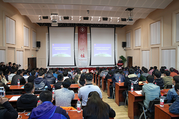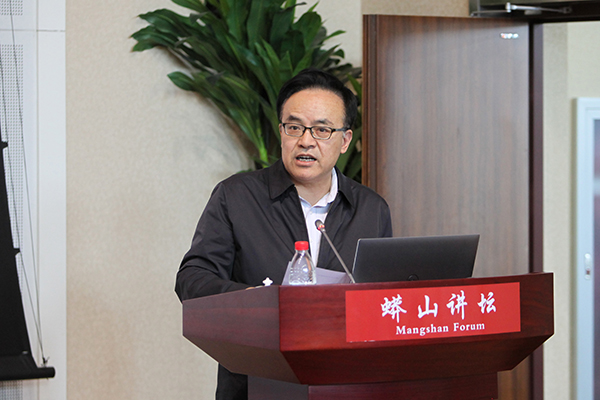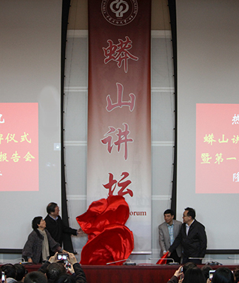 张来斌在揭牌仪式上致辞。他表示,为进一步贯彻落实国家创新发展战略,深入开展学术交流活动,更好地强化创新学术氛围,激发科研创新活力,提高学校学术影响力,促进学校“双一流”学科建设和学术水平不断提高,学校于2017年底提出设立高端学术讲坛,经过广泛征集定名为“蟒山讲坛”。“蟒山讲坛”以“创新学术、引领未来”为宗旨,将通过邀请国内外知名专家学者来校进行学术讲座,进一步营造良好的学术氛围,开拓学术视野,启迪学术思想,更好地促进学校学术水平和创新能力的快速提升。他强调,“蟒山讲坛”开讲也标志着学校65周年校庆学术系列活动正式拉开帷幕。