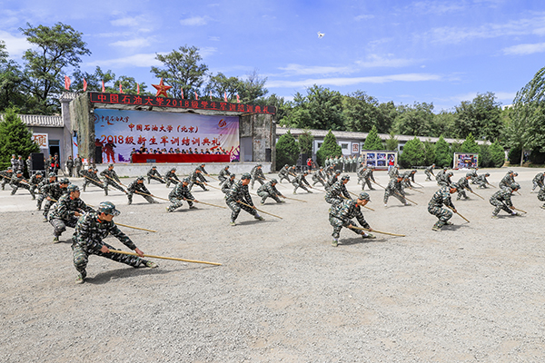 石大2018级学生军训历时14天,全体参训学生发扬了吃苦耐劳、团结友爱的精神,辅导员全程参训,完成了训练和思想政治教育双重工作。军训期间新闻宣传、安全教育、文体活动等工作有序展开,丰富了师生们的军训生活。“石大学工”微信平台推出“你好迷彩”军训特辑,每天推出一期军训图文,开展“家长留言征集活动”收录家长军训留言近千条。以网络直播形式全程报道庆祝建建校65周年合唱比赛。及时丰富的宣传受到了广大师生、家长的好评。