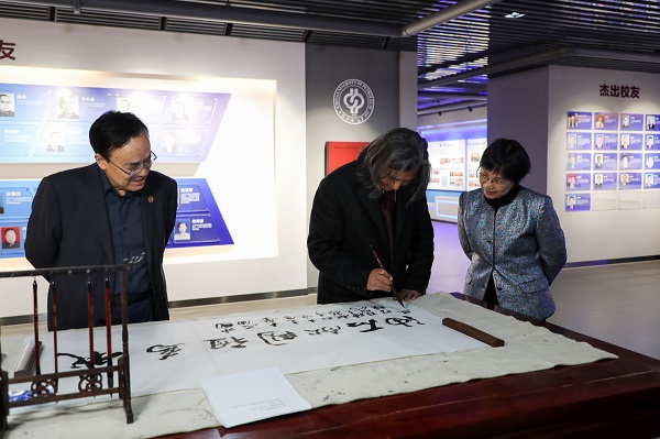 报告会前,吴为山参观了石大校园和校史馆等,并为石大题词。