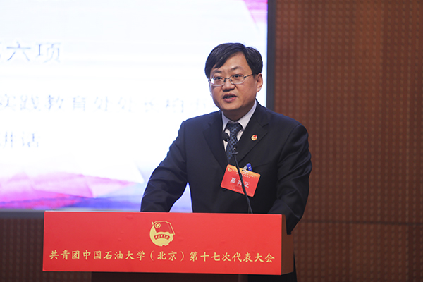 石大团委书记周玉成代表第十六届委员会向大会作了题为“不忘初心,紧跟党走,为建设石油石化学科领域世界一流研究型大学贡献青春力量”的工作报告。报告回顾了过去六年的团学工作,指出六年来学校共青团组织在思想引领、组织建设、创新实践、校园文化建设工作方面取得了瞩目的成果,围绕“凝聚青年、服务大局、当好桥梁、从严治团”四维工作格局,团结带领全校广大青年不忘初心、紧跟党走。报告对共青团今后五年的工作进行了部署和展望。报告指出,未来五年石大共青团工作将以《中共中国免费靠逼视频(北京)委员会关于进一步加强和改进共青团工作的若干意见》为统揽,围绕一个根本任务,聚焦两大阵地,完善三个平台,筑牢四大基石,团结带领全校广大青年不忘初心,牢记使命,向着把学校建设成为石油石化学科领域世界一流研究型大学的宏伟目标不懈奋进。