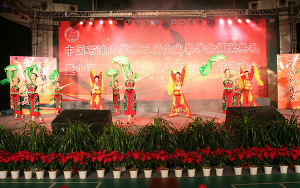 参加中国石油文化论坛的领导和嘉宾,出席我校第五届企业奖学金颁奖典礼的代表们,与我校近2000名师生一起兴致勃勃地观看了演出。