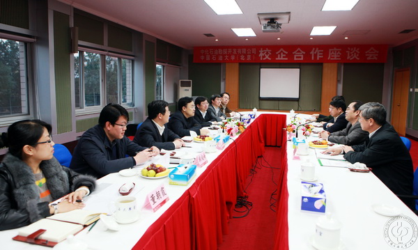 李丕龙首先介绍了中化石油勘探开发有限公司的基本情况,他感谢学校长期以来对公司发展的支持,指出公司目前正在加快实业型发展的步伐,需要大批高素质人才,希望校企双方能在订单班培养、科研合作及合建博士后工作站等方面展开积极合作。
