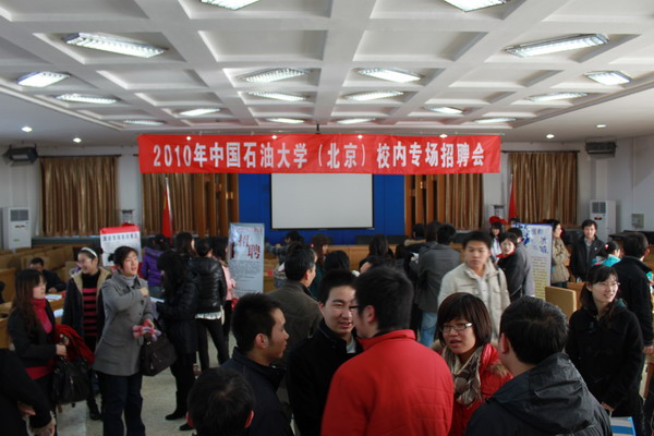 本次招聘会共邀请到了华北区中海物业、温都水城、北京市油源恒业科技有限公司等十六家单位前来参加。招聘单位覆盖管理、网络、培训、数学、销售、教育等行业。整场招聘会历时两个小时,不仅吸引了大批即将离开校园的2011届毕业生,还招揽了不少在读的低年级学生前来观摩,寻找兼职、实习机会。