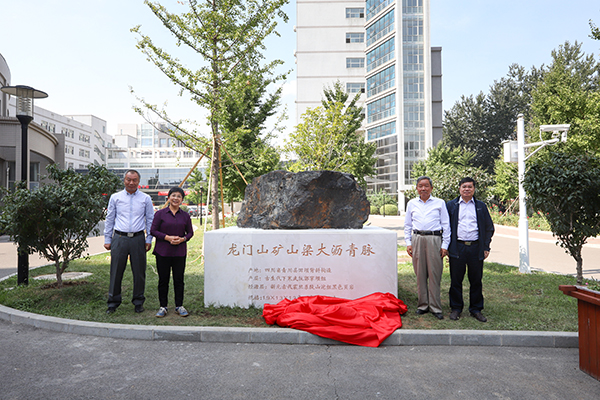 王铁冠,山红红,地球科学学院院长曾溅辉、党委书记王贵文共同为沥青标本揭幕。