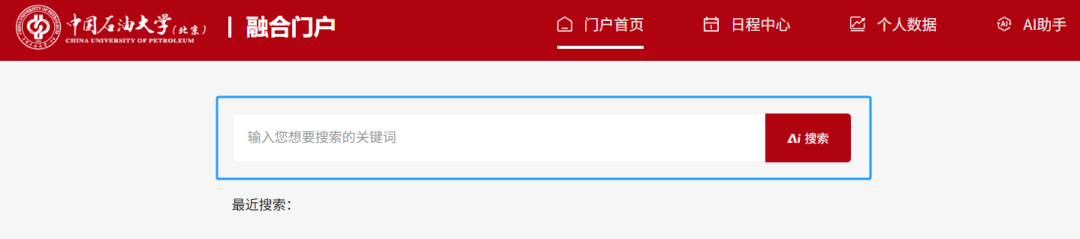 新版融合门户坚守融合、智能、便捷、高效理念,以简洁、干净、美观、大方为视觉锚点。顶部红色栏搭配校徽,传递校园文化底蕴,构建品牌识别记忆点。搜索栏醒目布局,功能入口整齐排列,数据看板、应用系统等模块有序铺陈,信息层级清晰,既让师生能快速捕捉关键内容,又以简约美学营造舒适直观的交互体验,让实用功能与视觉享受深度融合,重塑校园数智化服务的视觉感知。