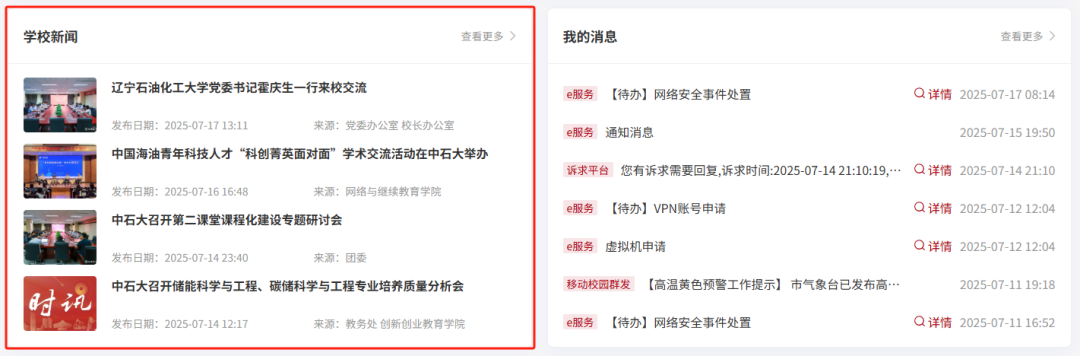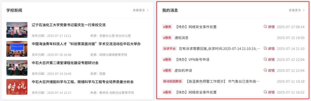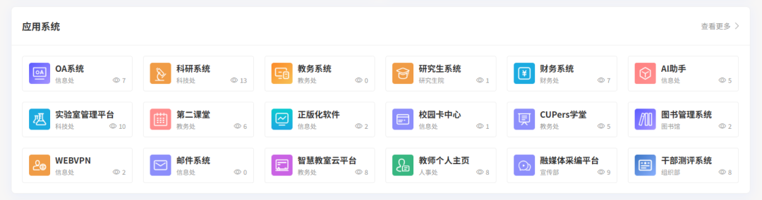 3、应用系统:整合校内信息系统单点登录入口,实现“一键直达”高效操作。