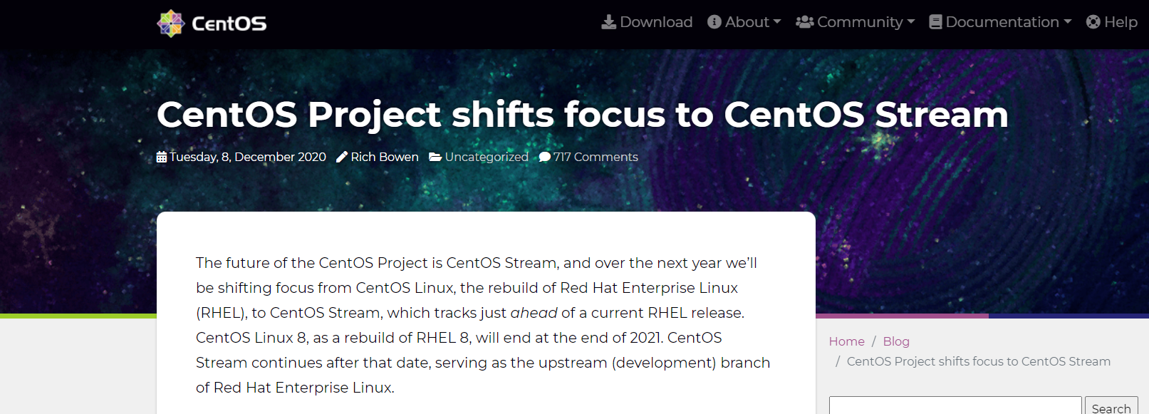 2020年12月8日,CentOS官网发布通知CentOS Linux 8于2021 年12月31日停止服务。CentOS Linux 7将于2024年6月30日停止服务。CentOS Stream 为CentOSLinux 8结束之后,作为Red Hat Enterprise Linux 的上游(开发)分支,其可靠性、稳定性肯定不及CentOS Linux,不建议使用在生产环境中。