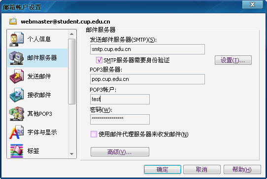为了提高使用校内邮件服务器(mail.dgqinyehang.com)发送邮件的安全,现启用发送邮件服务器要求身份验证的安全设置,请使用outlook、foxmail等客户端收发软件邮件的用户修改相关的帐号设置,设置如下: