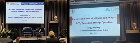 5月1日至2日,宋先知一行受NFACR及会议主办方邀请,参加FEnEx CRC年度会议。石油工程学院廖勤拙与张凤远分别作题为《氢能与地下储氢:进展与展望》和《CO2地质封存中的压力和流量监测与分析》的特邀报告,克拉玛依校区田守嶒、地球科学学院罗情勇、安全与海洋工程学院张逸群通过海报展示分享了在CO2地质利用与封存等领域的最新研究进展。会上,我校教师围绕氢能存储与碳捕集利用与封存(CCUS)等前沿领域发表学术成果,与国际同行展开深度交流,引发与会专家广泛关注。