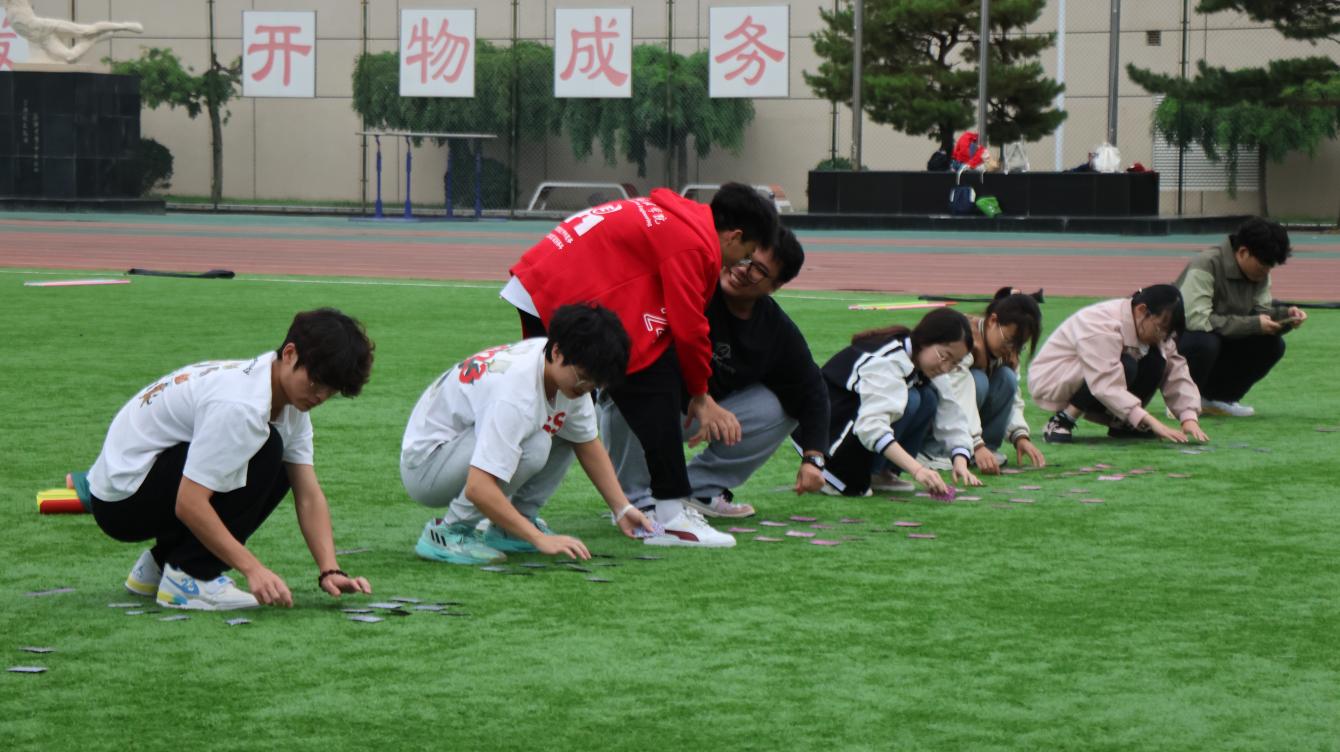 在第一个游戏校史学习“超英速”环节,各组队伍在队长和队员的密切配合进行比赛,从人员部署到比拼技巧都下足功夫,比赛过程紧张刺激,大家目标明确,干劲十足。同时本项游戏还融入了校史知识学习教育,在活动道具中与学校成立以来的重大历史事件结合起来,使学生在参与活动的过程中学习校史文化,培养爱校情怀。接下来,各队在“不倒森林”“珠行万里”“鼓动人心”“激情节拍”等活动项目中展开了智力与体力的大比拼,各个环节中团结协作、激烈角逐,在快节奏的体验中感受团队合作带来丰硕的成果。